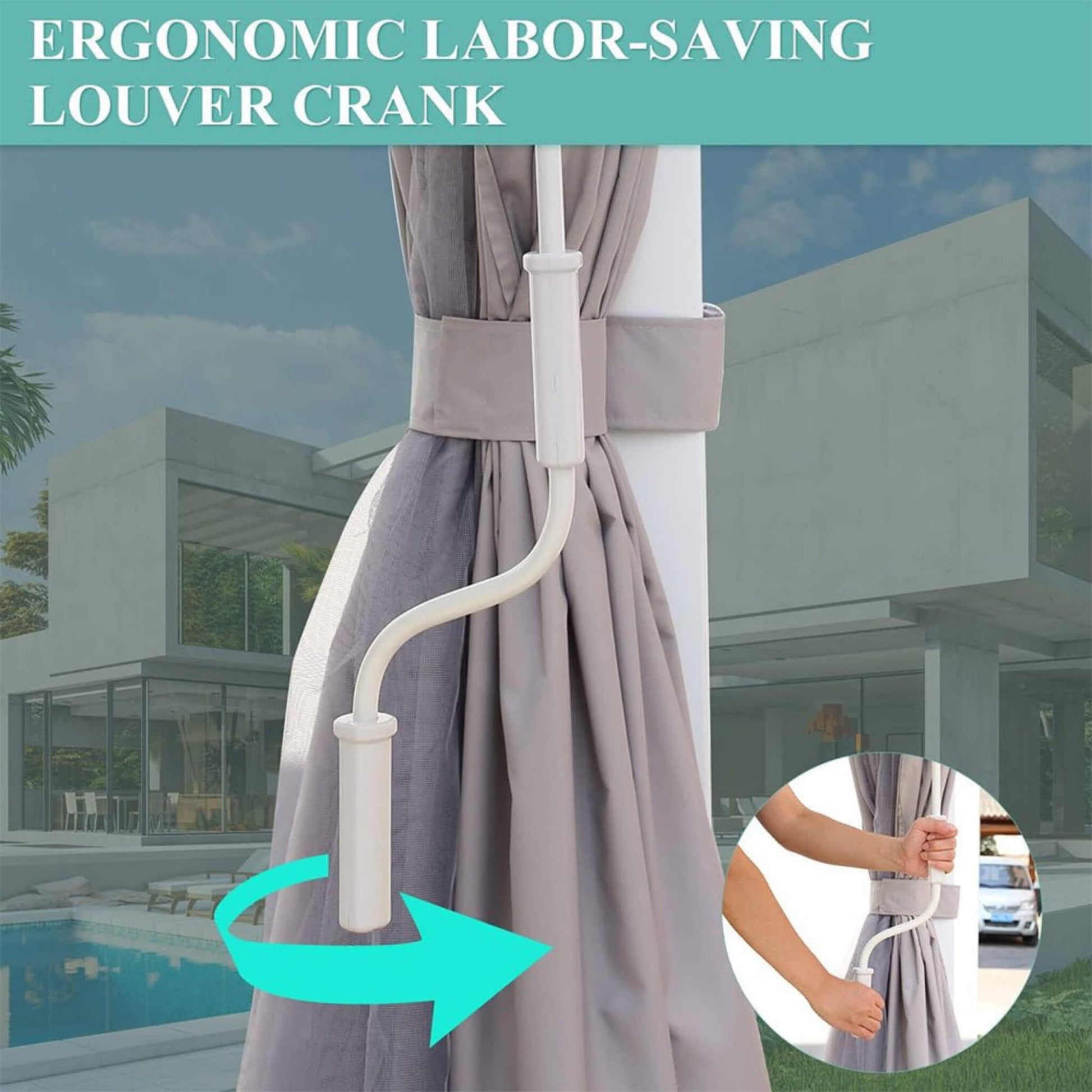 - Equipped with removable double-sided zipper curtains and nets, the pergola guarantees your privacy while shielding you from the elements. The double-track system facilitates easy sliding of each layer, while strategic straps prevent the curtains and mesh from billowing in strong winds, making it the perfect setting for any outdoor occasion.