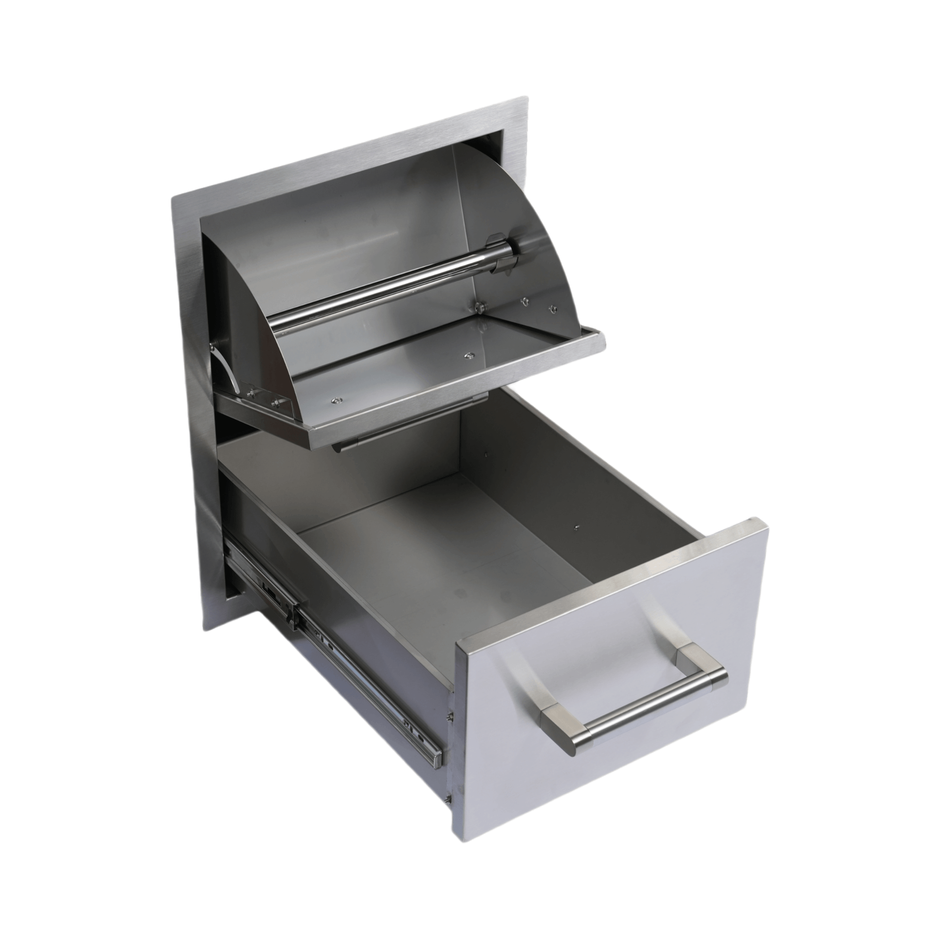 - Double door combo and triple-access drawers with a built-in paper towel holder ensure every tool is within reach and neatly organized.